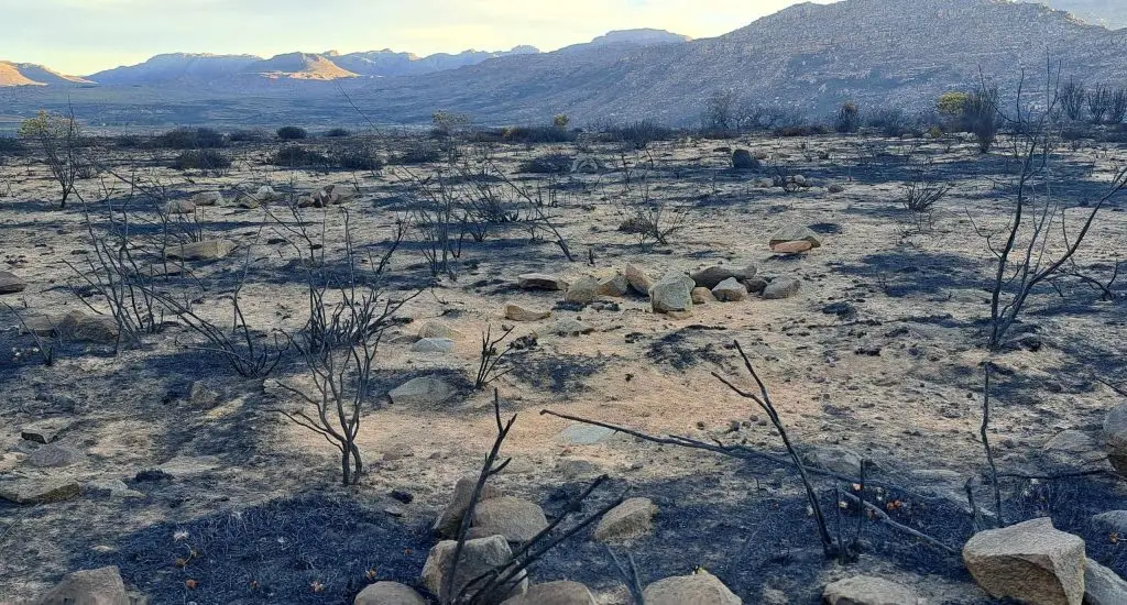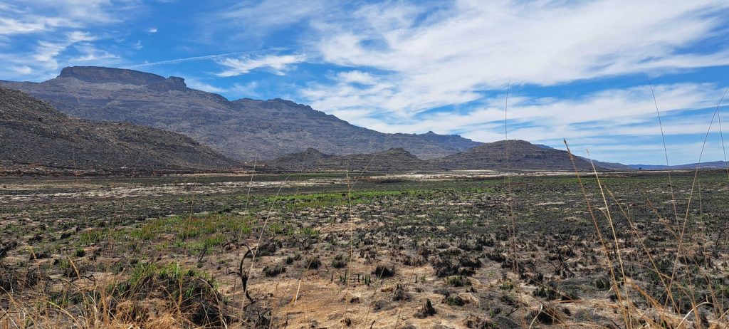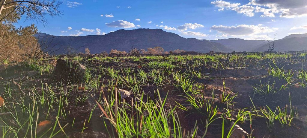 Green shoots of fire lilies already sprouting up in some areas – the start of rebirth and regrowth, although it will take longer for most species to recover. Some areas looked like Mordor.