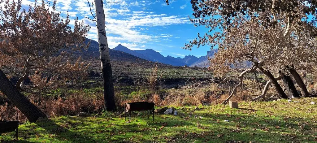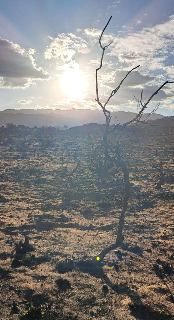 In December 2025, when I was already mostly packed and a few days from leaving, I got the news that a fire had devastated the campsite and it was closed. My nervous system took a little time to adjust – to even take this news in. Initially it seemed that the entire campsite and surrounds was burning or burnt – focus turned to the main house, the staff houses, the animals.